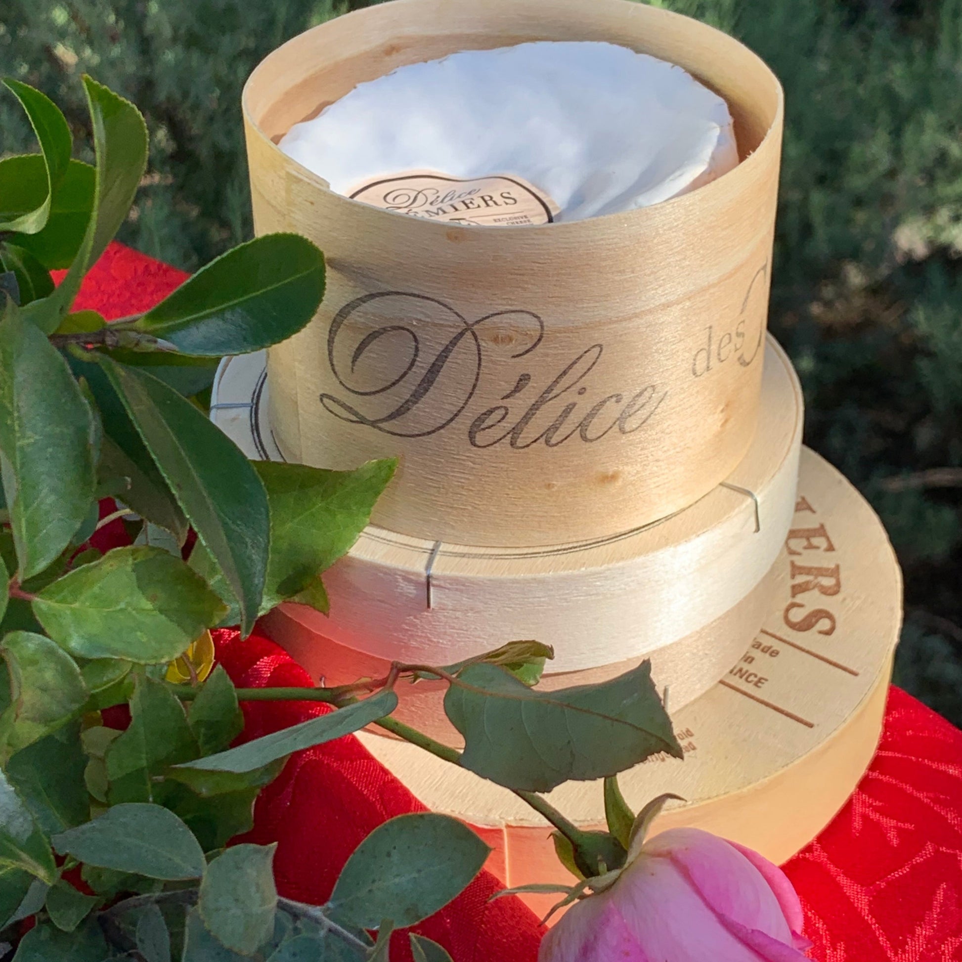 Délice des Crémiers, which translates to "Creamy Delight," is a double-cream cheese made by the Delin Creamery in the Burgundy region of France.